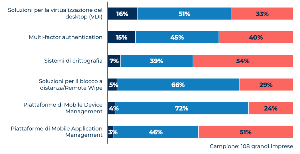 Si parla di hardware, sistemi per l’accesso sicuro da remoto (ad esempio VPN) e strumenti per la collaborazione e la comunicazione. Un’ulteriore differenza riguarda la propensione all’investimento in tecnologie innovative, che è molto più alta nelle grandi imprese, soprattutto dove lo Smart Working si poteva già dire “rodato”. Oltretutto, sono soprattutto le realtà imprenditoriali di maggiori dimensioni e le PA ad aver erogato formazione ai dipendenti per un uso sempre più consapevole e corretto delle tecnologie messe a disposizione. Questo aspetto è particolarmente importante anche per favorire una maggior sicurezza informatica, spesso messa a rischio proprio da errori involontari o mancanza di conoscenze.